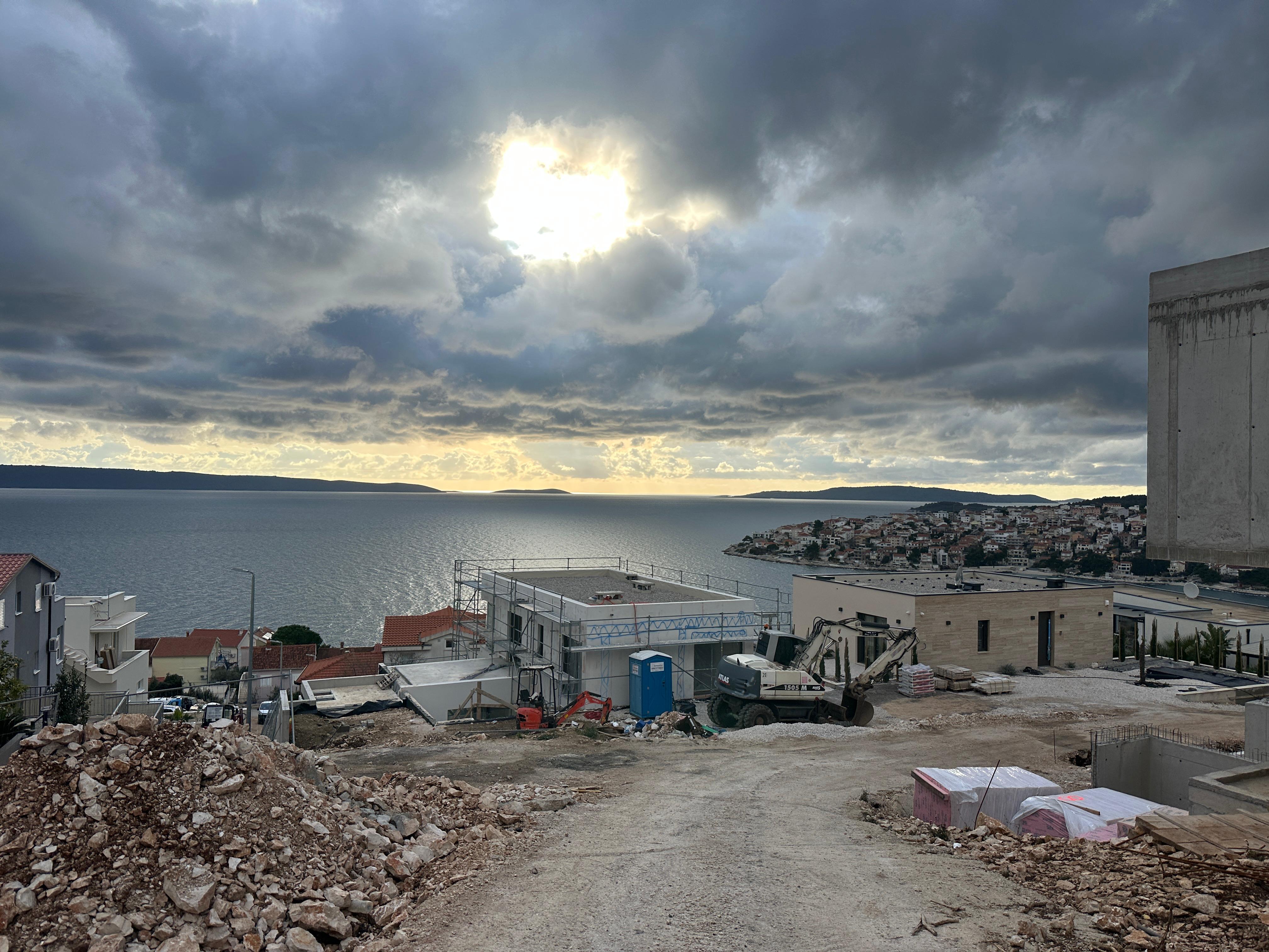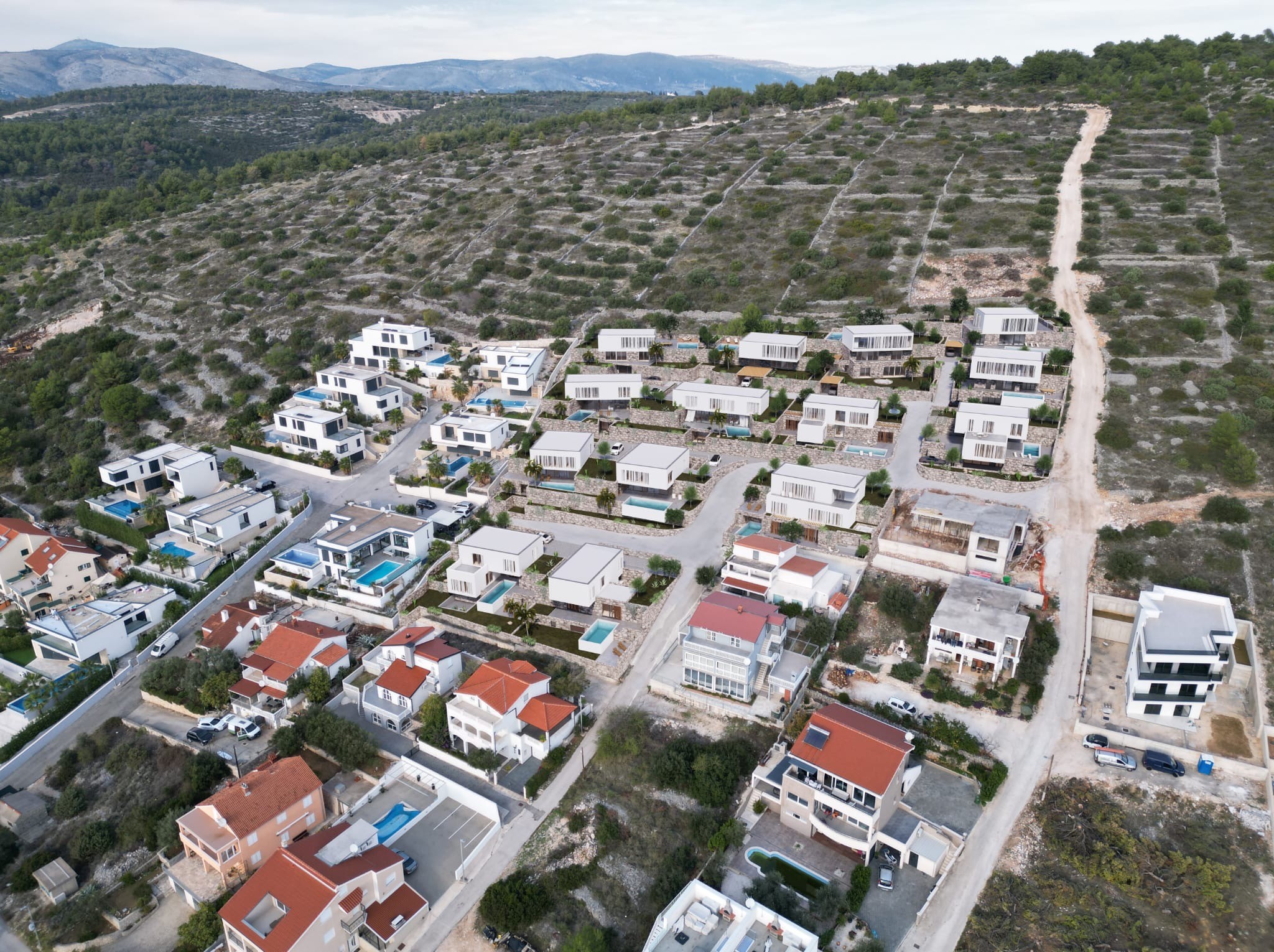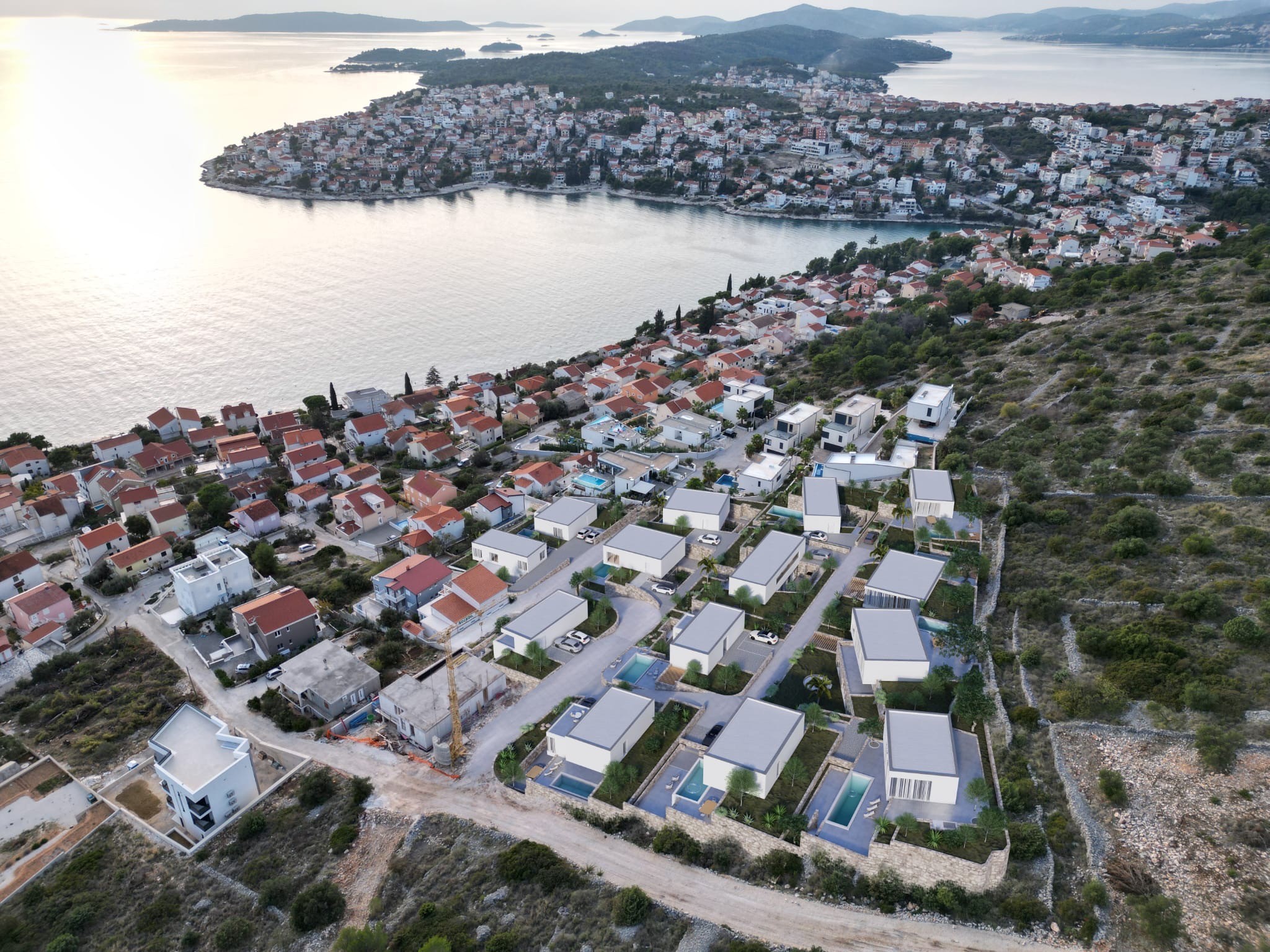 This contemporary luxury villa enjoys a privileged and tranquil position in the prestigious area of Mavarčica, Okrug Gornji, on the island of Čiovo, offering privacy, refined comfort, and beautiful panoramic sea views.
