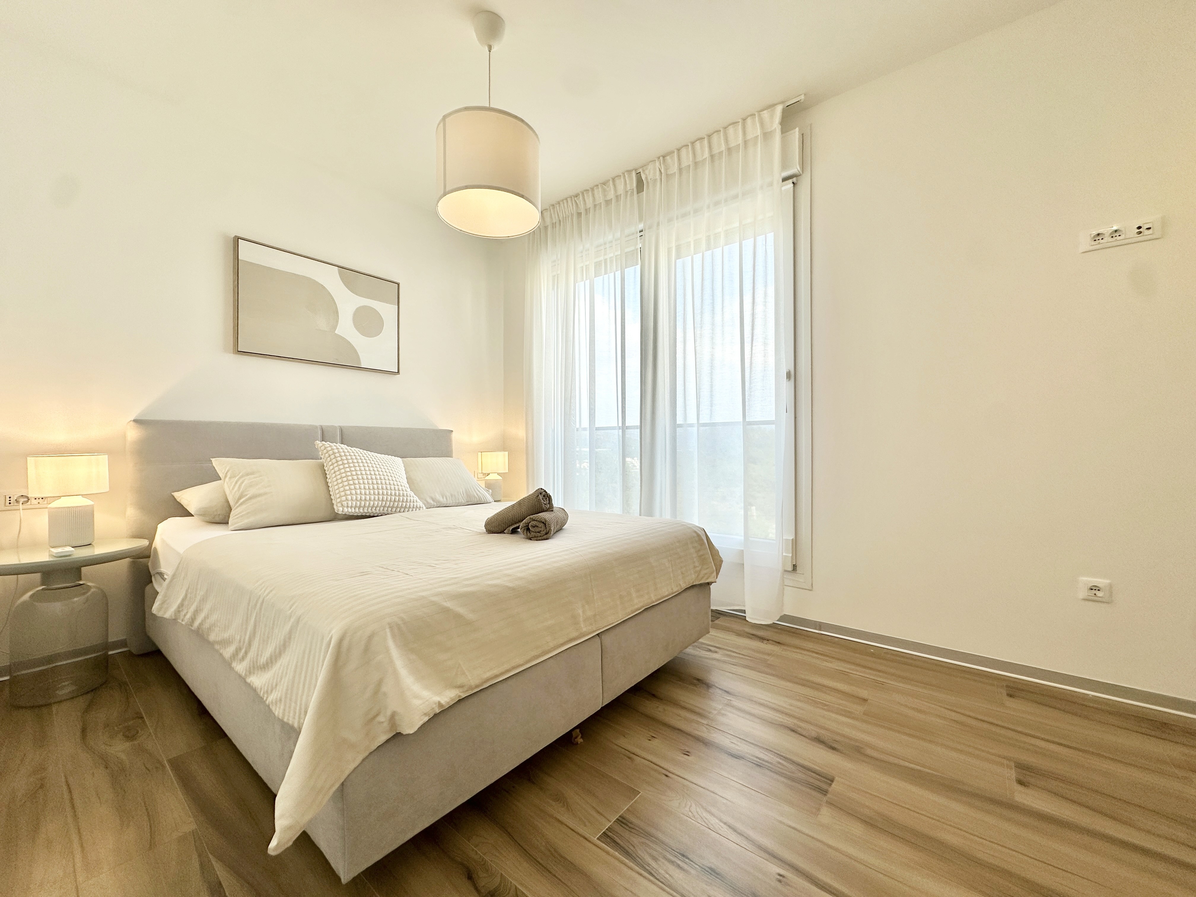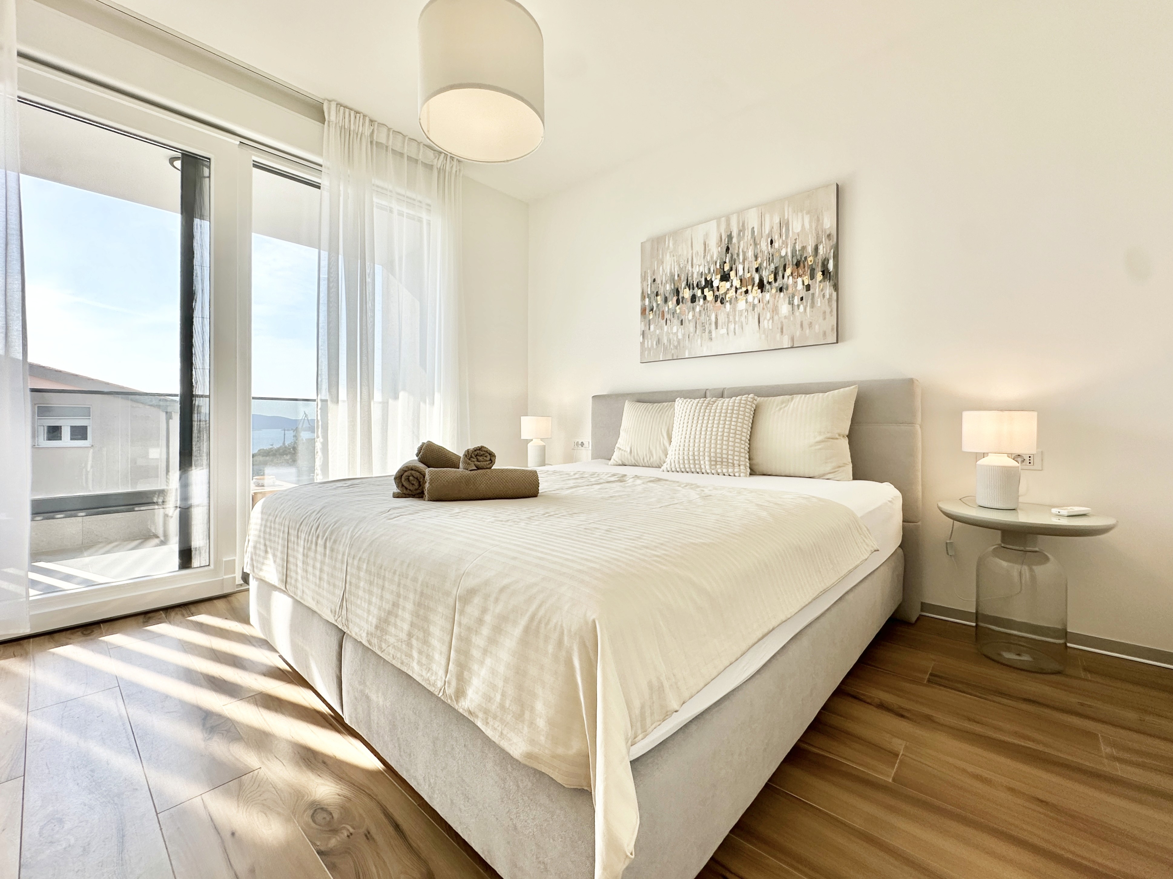 The apartment is located on the island of Čiovo, which is connected by bridge to the historic town of Trogir. This location offers the perfect balance between a peaceful island setting and proximity to all essential amenities.